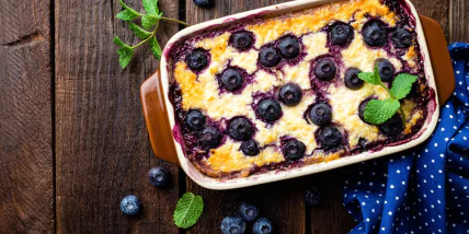 З нього традиційно готують сирники, запіканки, пироги, зокрема тертий пиріг з сиром, та десерти, адже він робить випічку м’якою та ніжною. Сьогодні ми пропонуємо легкий варіант запіканки з фруктами, яка виходить повітряною, як чизкейк, і готується швидко, без зайвих турбот. Для найкращого смаку обирайте свіжий, щільний кисломолочний сир без зайвої рідини, а заморожені ягоди попередньо трохи розморозьте та обсушіть, щоб запіканка не стала водянистою. Рецептом з нами поділилися на Instagram-сторінці "emiliya.yevtushenko".