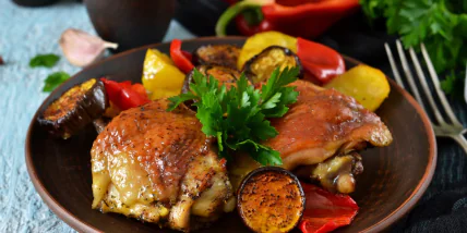 З курки можна приготувати безліч страв: від класичної запеченої до соковитої у вершково-грибному соусі або ароматного каррі. Курячі стегна особливо добре підходять для запікання, оскільки залишаються м’якими і соковитими, а правильний вибір спецій та масла робить їх ароматнішими. Але сьогодні пропонується швидкий і простий рецепт курки в духовці, який не потребує складних соусів і при цьому зберігає соковитість м’яса. Для найкращого результату варто обирати свіжі стегна без кісточки, молоді овочі і вершкове масло високої якості; якщо використовуються спеції, краще робити власні суміші або перевірені готові, щоб не перебити природний смак курки. Рецептом з нами поділилися на Instagram-сторінці "irina.cooks.it".