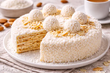 Вафельний торт "Рафаелло" без випічки: ніжний, кокосовий і готовий за 15 хвилин (відео)