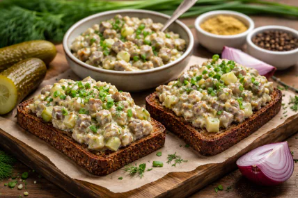 Для приготування важливо обрати якісний оселедець: філе має бути щільним, без різкого запаху і зайвої солоності. Якщо риба занадто солона, її варто попередньо вимочити у холодній воді або молоці. Огірки краще брати хрусткі, без надмірної кислоти, а гірчицю — комбінувати: діжонська додасть м’якості, а класична — гостроти. Цибулю не слід перетримувати в окропі, інакше вона втратить текстуру; оптимальний час — до 10 хвилин. За бажанням можна додати варене яйце або трохи вершкового сиру — це зробить намазку ніжнішою.