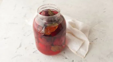 Банки заповнити гарячим маринадом, закрити щільно кришками, перевернути і укутати рушником. Залишити до повного охолодження.