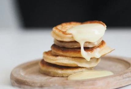 - Нагрійте велику антипригарну або чавунну сковороду на середньому вогні та починайте смажити оладки, додаючи трохи вершкового масла перед кожною новою порцією. Готуйте, поки на поверхні тіста не з’являться дрібні бульбашки, потім переверніть і готуйте ще 2 хвилини.