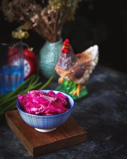 - Щодня прес знімаємо, капусту з буряком перемішуємо і знову притискаємо вагою. Можна спостерігати, як капуста в процесі квашення набуває гарного рожевого відтінку.