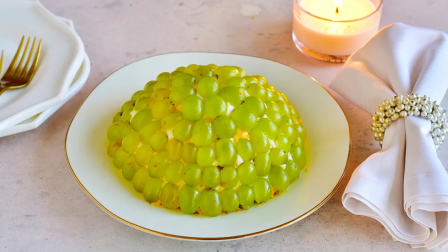 Зверху прикрасити салат половинками виноградин. З будь-якої зелені зробити імітацію виноградного листка.