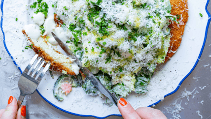 Страви з курки — це величезний обшир різних варіантів приготування. Ділимось рецептом цікавого обіду або гарної святкової подачі — шніцель "Цезар".