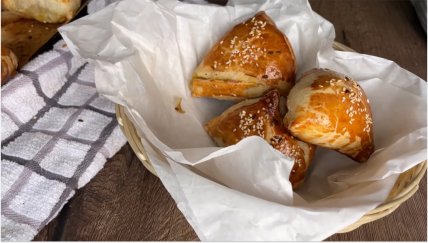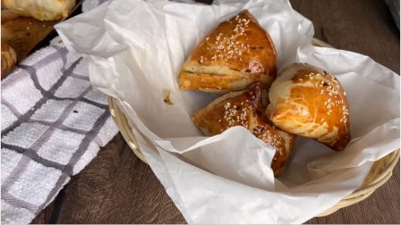 Рецепт шумуша очень простой. Благодаря готовому слоеному тесту его приготовление занимает минимум времени. Вы можете сделать как один большой пирог, который легко разделить на порционные кусочки, так и маленькие треугольники, удобно брать с собой.