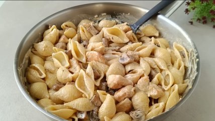 Макароны с курицей и грибами в сливочном соусе (видео)