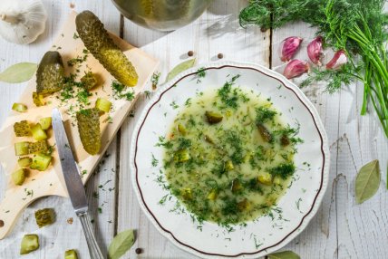 Суп з солоних огірків - це типовий польський суп на кожен день. Солоні огірки готують так само, як квашену капусту, буряк і житнє закваску: їх заливають розсолом з додаванням спецій, кропу і часнику. Влітку на шкірці огірків присутні натуральні лактобактерії, завдяки яким відбувається процес ферментації. Зазвичай в огірковий суп додають картоплю або рис, дрібно порізаний кріп. Між іншим, огірковий розсіл багатий вітамінами і мінералами, і це відмінний засіб від похмілля.